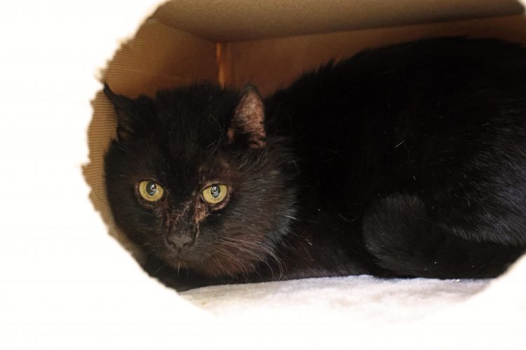 Blacky, geboren 4.5.22, kastriert – Zuhause gfunden Blacky kam zusammen mit Bella und Tiger über das Veterinäramt zu uns. Er wurde, wie seine Kollegen auch, als reine Wohnungskatze gehalten und hat mit Hunden zusammengelebt. s Blacky ist sehr schüchtern und braucht ein wenig Vertrauen und Anlaufzeit. Wir sind sicher, der nette Kater findet bald sein…