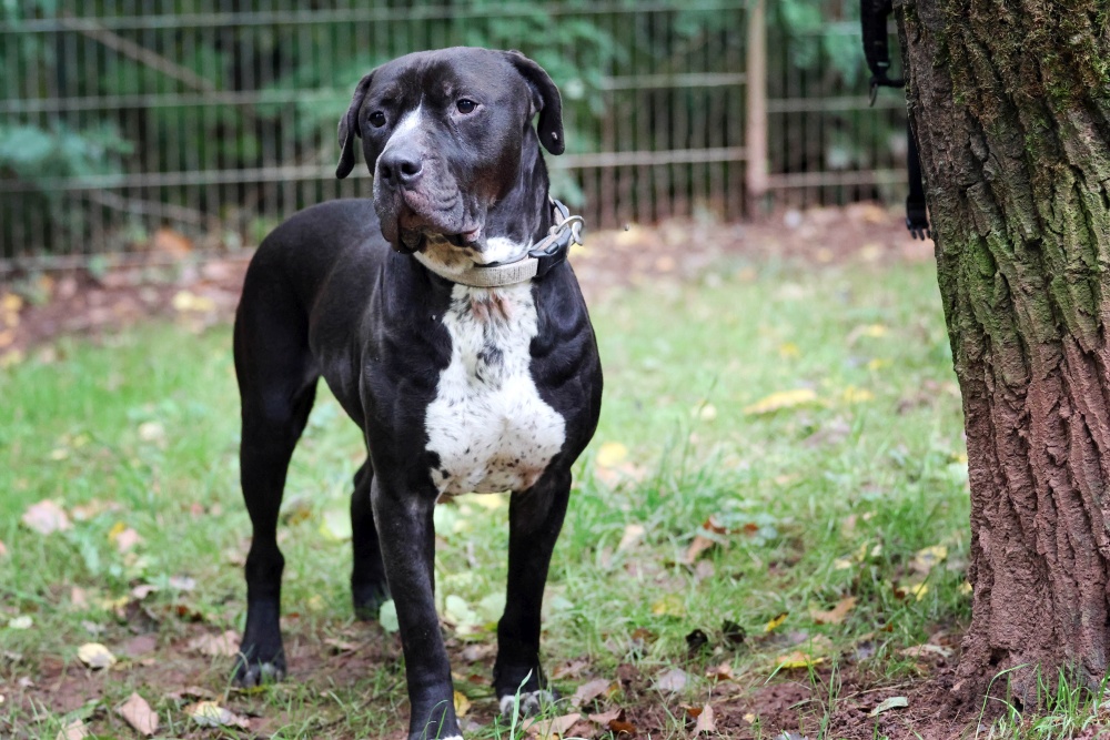 Digger zeigt sich bei uns als eher unsicherer Hund. Allerdings ist er dabei auch der Typ, der durchaus knurrt und sich so Unliebsames vom Leib hält. Bei einem so kräftigen Hund wie ihm beeindruckt das durchaus. Er hat eine wirklich unbändige Kraft und die weiß er einzusetzen, wenn es gilt, von A nach B zu kommen. Leinenführigkeit und die Orientierung am Mensch ist ihm noch ziemlich fremd. Das lernt er nun ganz langsam.